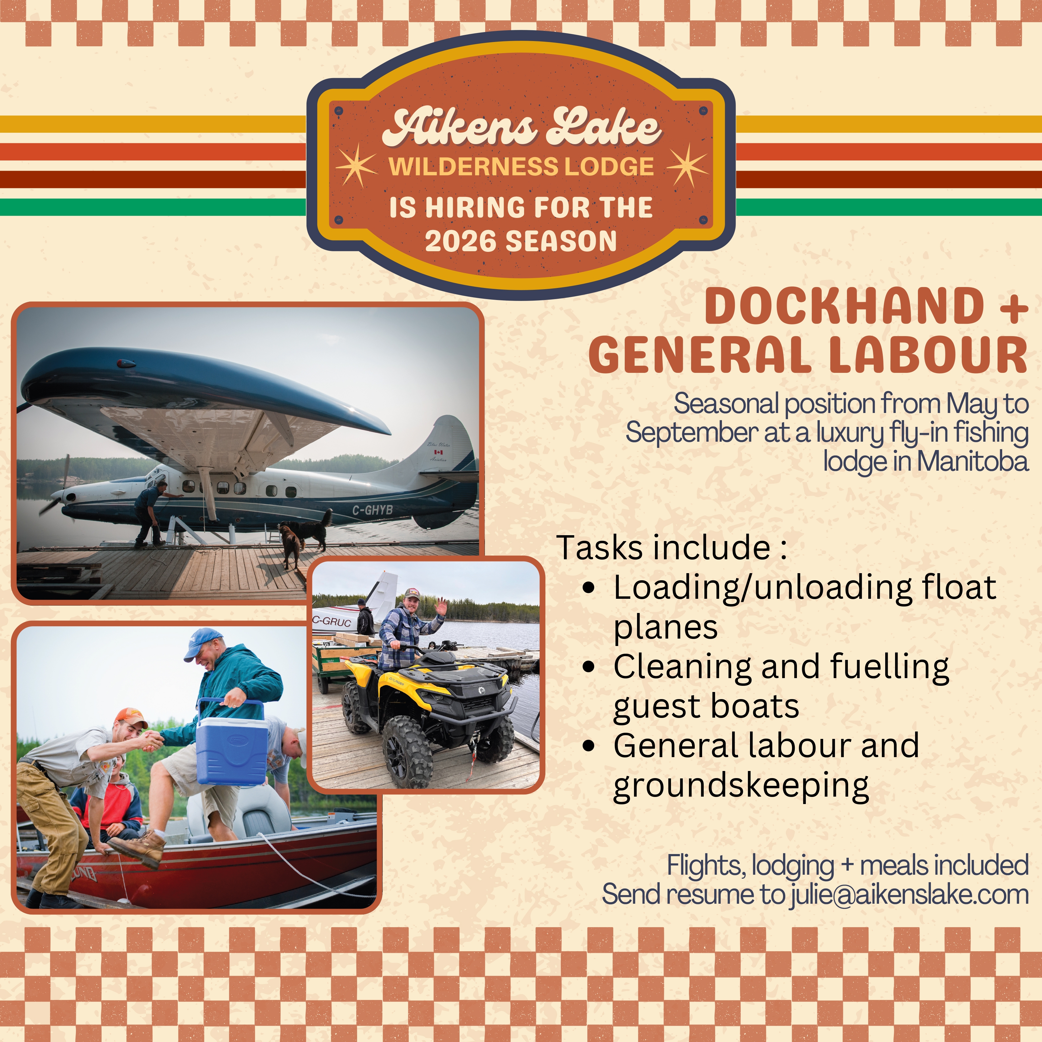 Dockhand and General Labour: Are you a hard-working individual? Do you love working outdoors? Do you love being on a lake? Then why not spend your whole summer enjoying working as a Dock Hand or a General Labourer at our fishing lodge for our 2026 season!