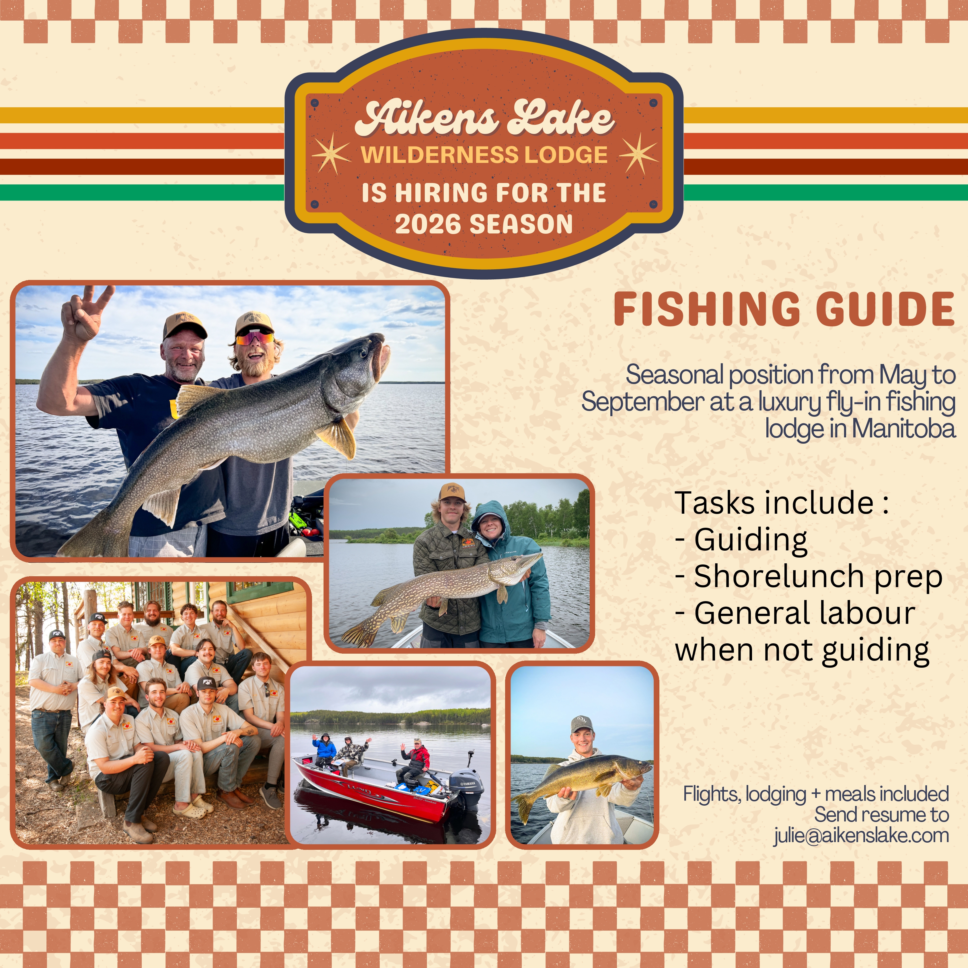 Fishing Guides: Are you passionate about fishing? Does spending your days on a pristine lake, sharing your knowledge and love of fishing sound like a great way to spend a summer? We’d like to hear from you! We are now accepting applications for Fishing Guides for the 2026 season.
