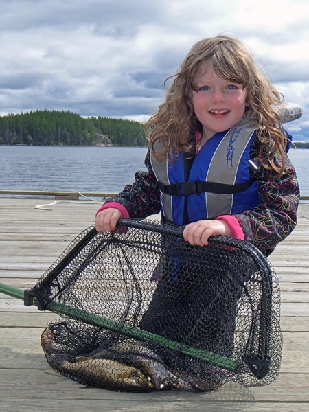 “One of the guides happened to be a school teacher, so he would teach my granddaughter Audrey card tricks at night in Big Molly’s,” Jim said. Audrey also had fun playing with Annika, Marty and Natasha and jumping on the trampoline, but make no doubt about it: this girl can fish.